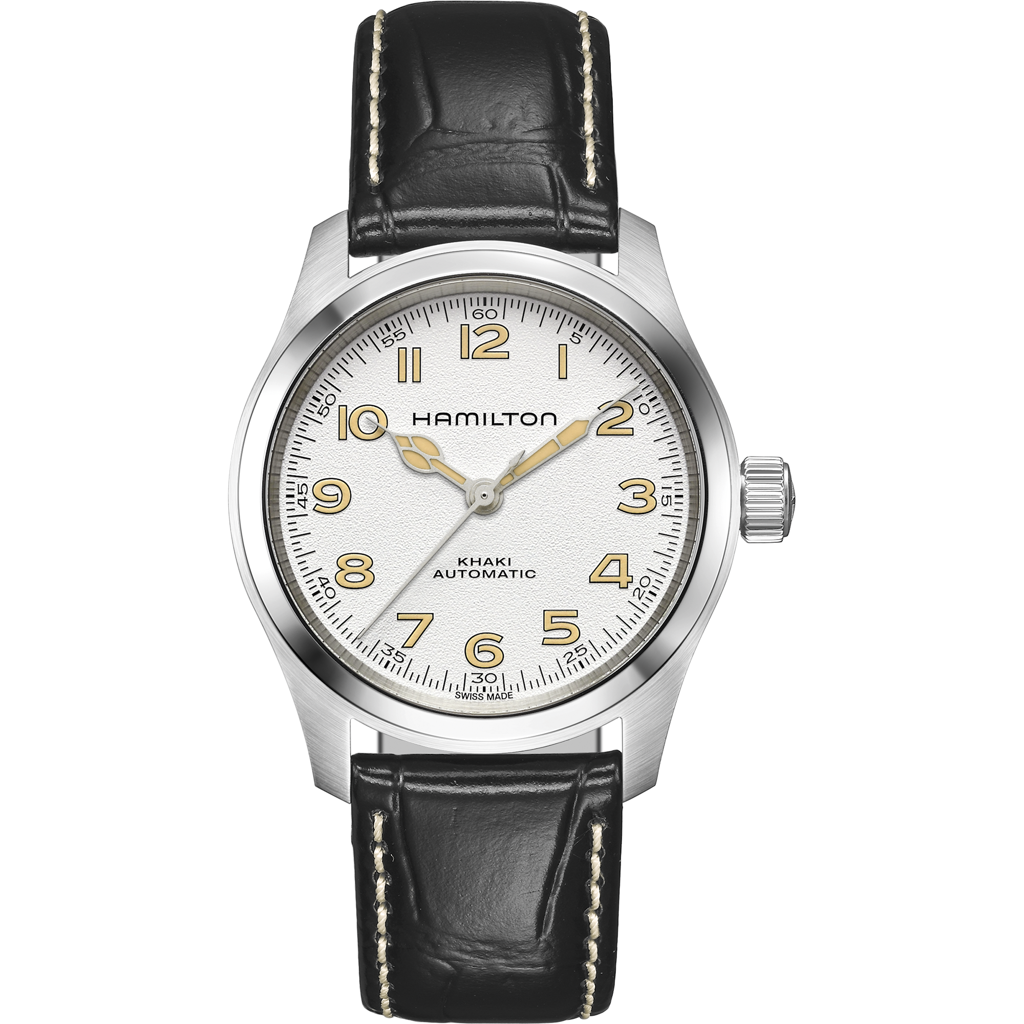 An iconic film favorite, the original Murph is now reimagined with a modern twist. A new dial in antique white with a grained finish showcases the cathedral shaped hands, giving a vintage look to the timepiece. A piece for Hamilton and Hollywood enthusiasts, the new white dial is now available on a black leather strap.